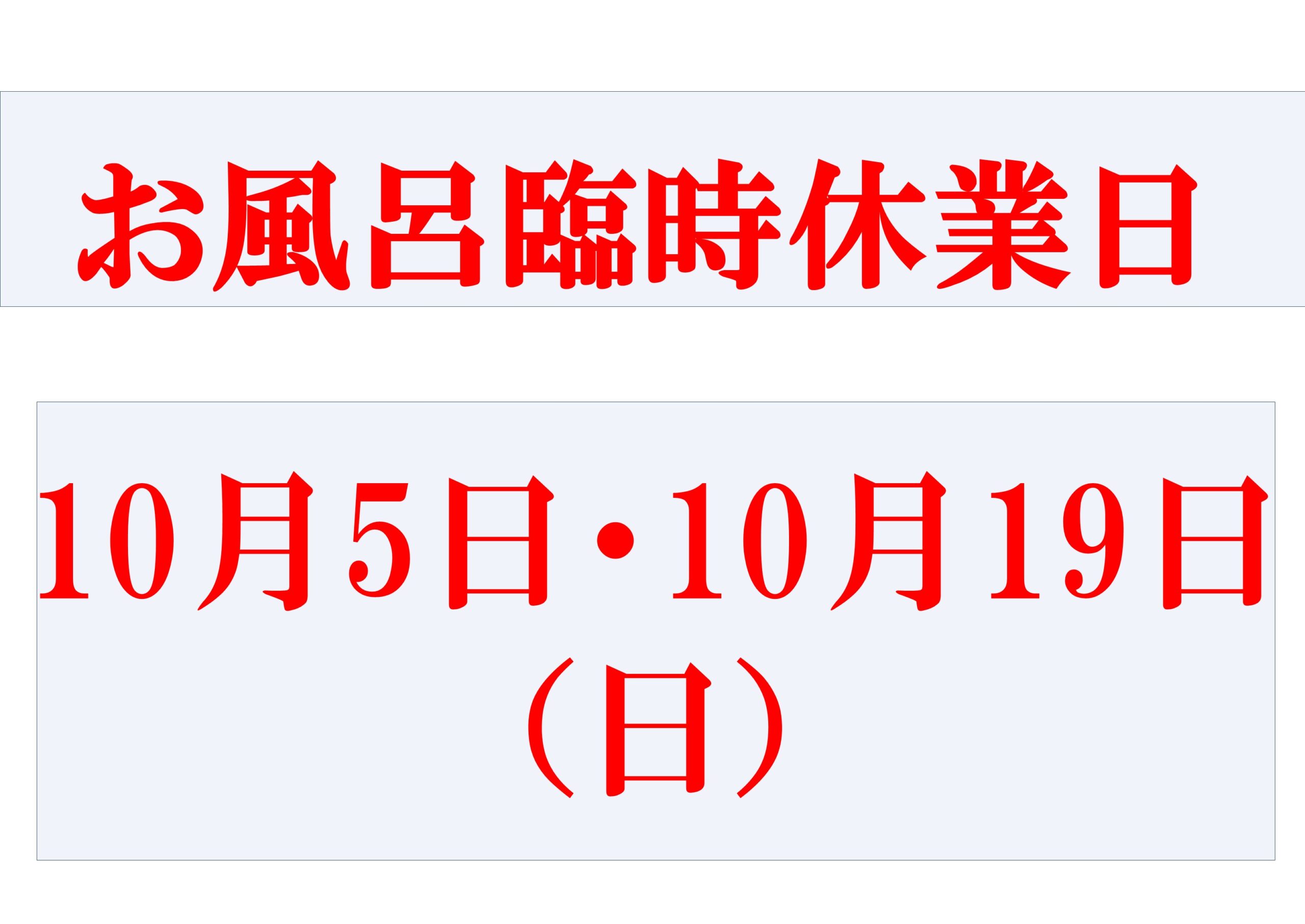 【緊急のお知らせ】明日9/12(金)男性お風呂を休止いたします