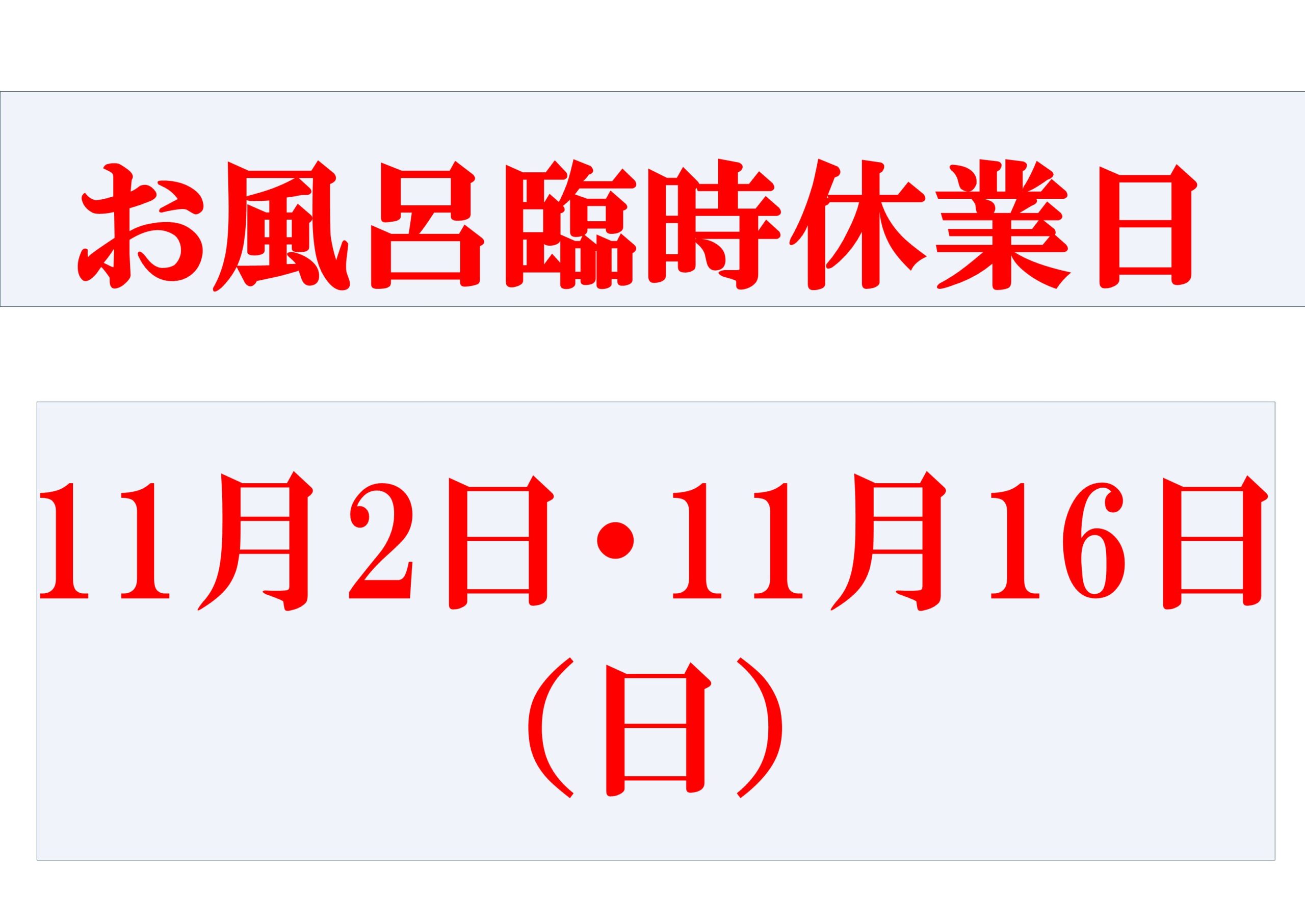 【緊急のお知らせ】明日9/12(金)男性お風呂を休止いたします