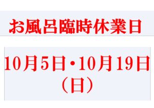 10月のお風呂臨時休業日は、10/5(日)・10/19(日)です。